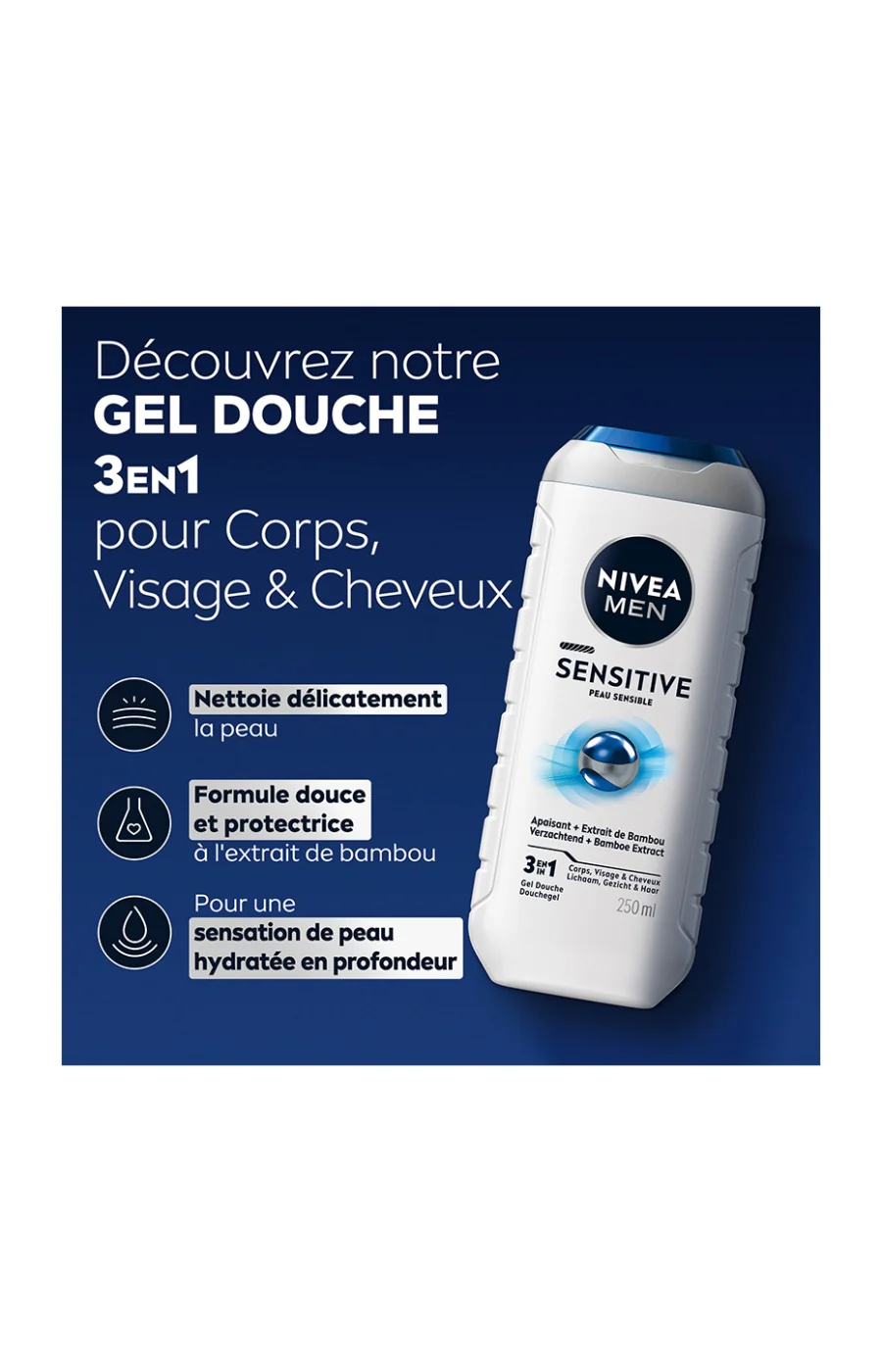 Gels douche aux extraits de bambou - Peaux sensibles - Homme - 3 x 250 ml