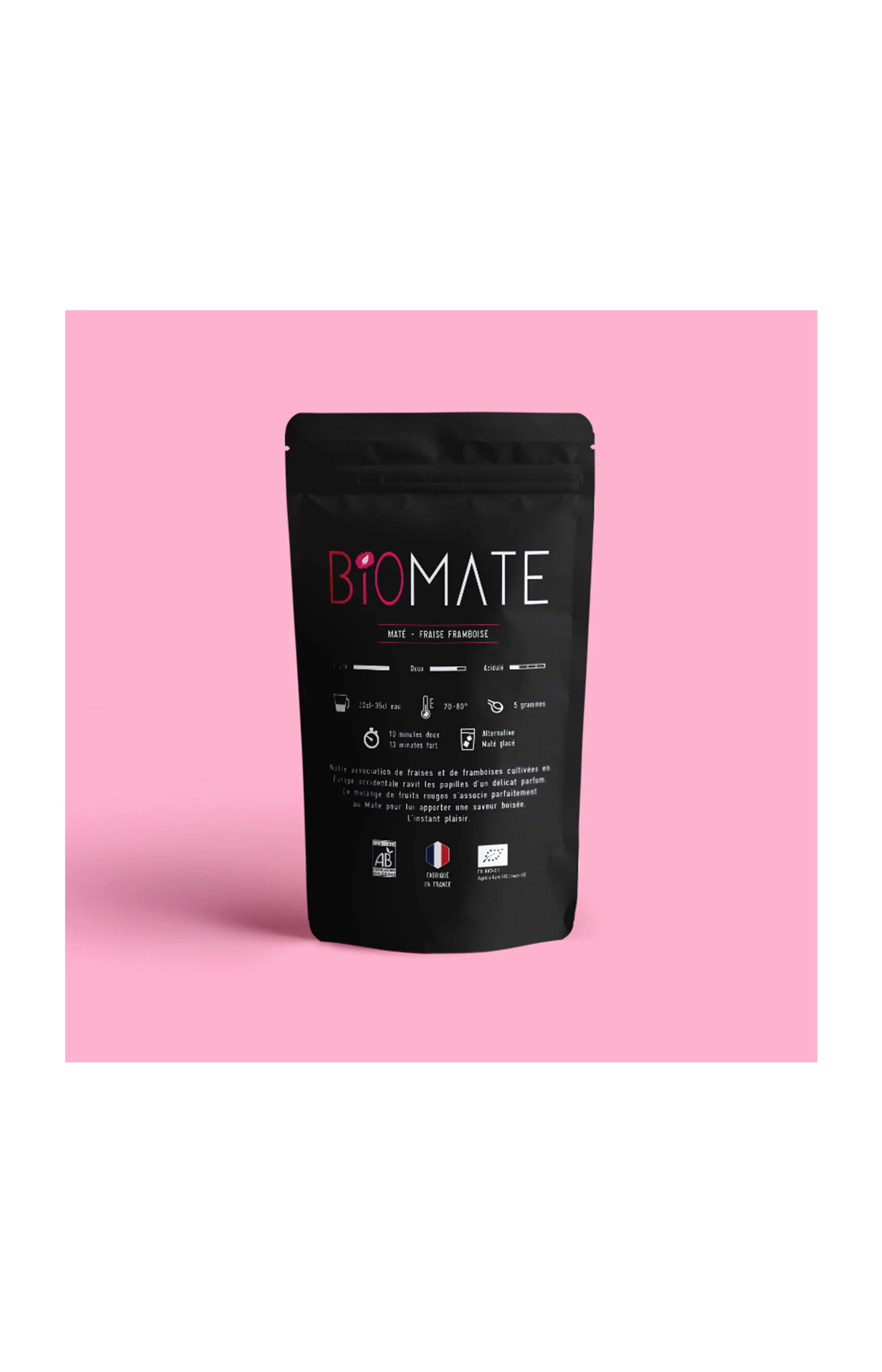 Laissez-vous séduire par l’alliance fruitée et pétillante du maté vert avec la fraise et la framboise, en version bio de Biomate. Une infusion aussi gourmande que rafraîchissante, qui associe énergie, bienfaits antioxydants et plaisir gustatif. Sa saveur délicatement sucrée et acidulée en fait une boisson parfaite à savourer chaude ou glacée, à tout moment de la journée.